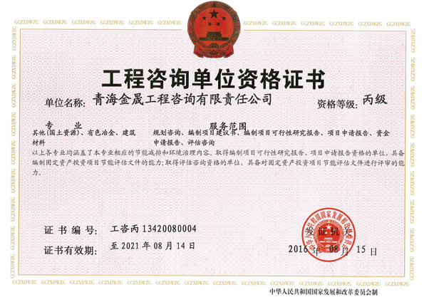 青海金晟工程咨詢有限責任公司成立于2006年1月,是國家發(fā)改委審核認定,并取得《工程咨詢資格證書》的專業(yè)咨詢單位。公司具有獨立法人資格,主要從事礦山企業(yè)規(guī)劃咨詢、工程項目規(guī)劃、設(shè)計及招投標咨詢、建設(shè)項目評估咨詢、工程項目管理、工程項目建議書、可行性研究報告、項目申請報告、資金申請報告及礦山開發(fā)利用方案的編撰等服務(wù)。